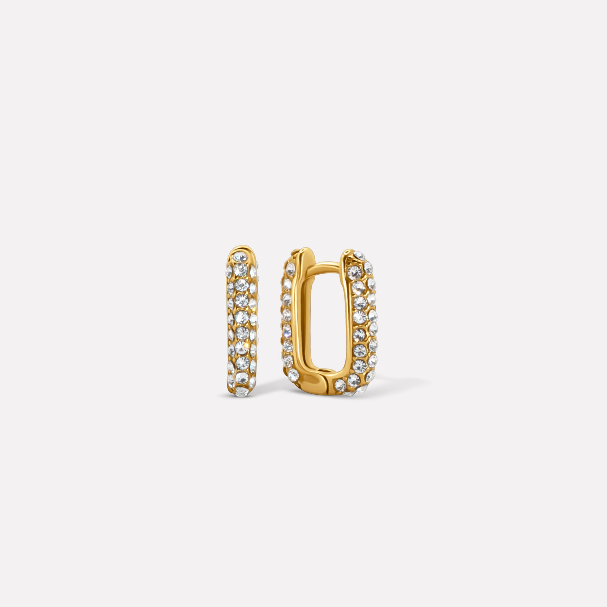 The Ophelia huggie is adorned with rows of brilliant pavé stones that catch the light from every angle. This piece transitions seamlessly from day to night.